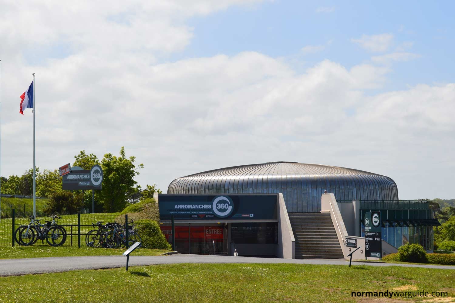 Located on the Arromanches cliff tops overlooking the remnants of a Mulberry Harbour the Arromanches 360 plays the film “The Price of Liberty”. The film is projected in HD onto 9 screens located 360 degrees around the visitor. The film retraces the 100 days of battle using modern and unpublished archive footage.