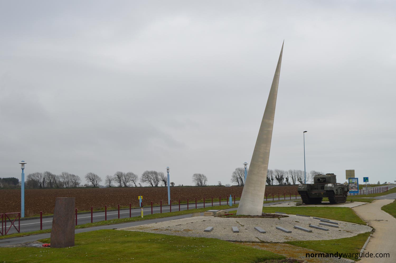 A memorial to 77 Armoured Engineer Squadron and 22nd Dragoons Flail Tanks located on the beachfront at Lion-sur-Mer