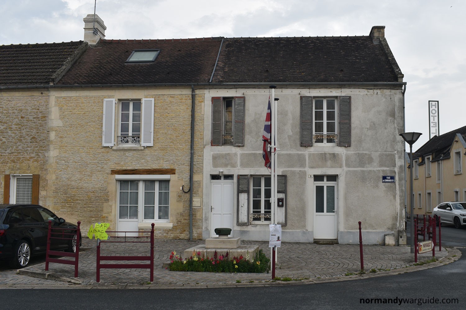 A memorial to the 177 French soldiers of Commando No4 located opposite Bénouville church (Église Notre-Dame du Port)