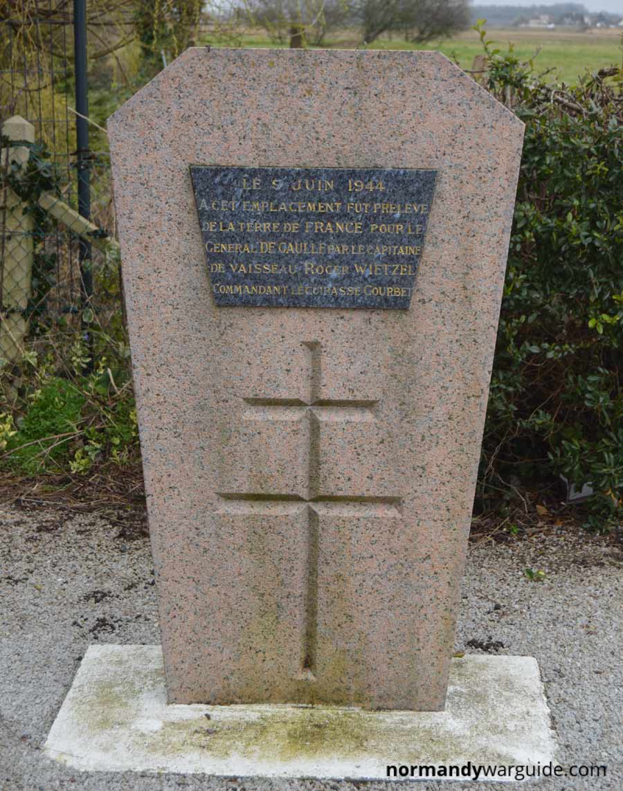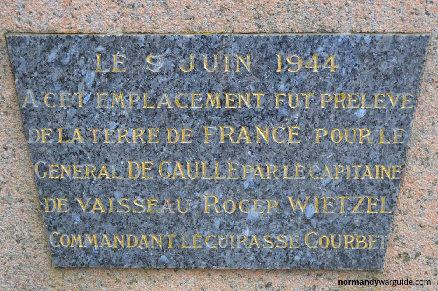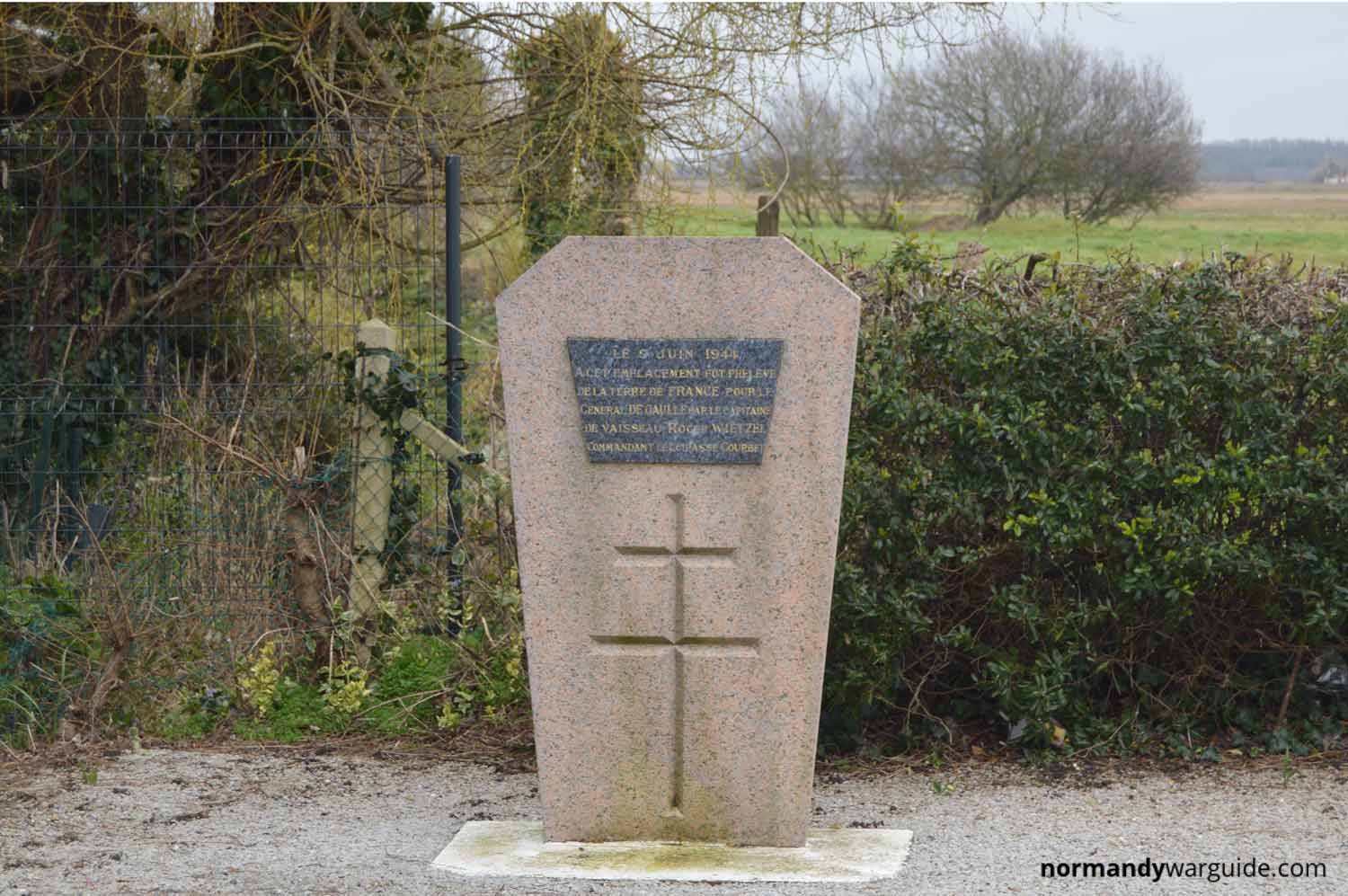 A memorial commemorating the location Captain Roger Wietzel took French Earth for General De Gaulle.