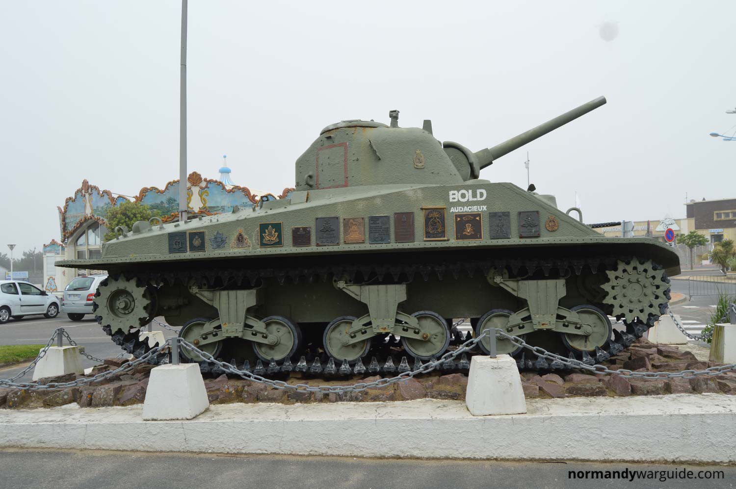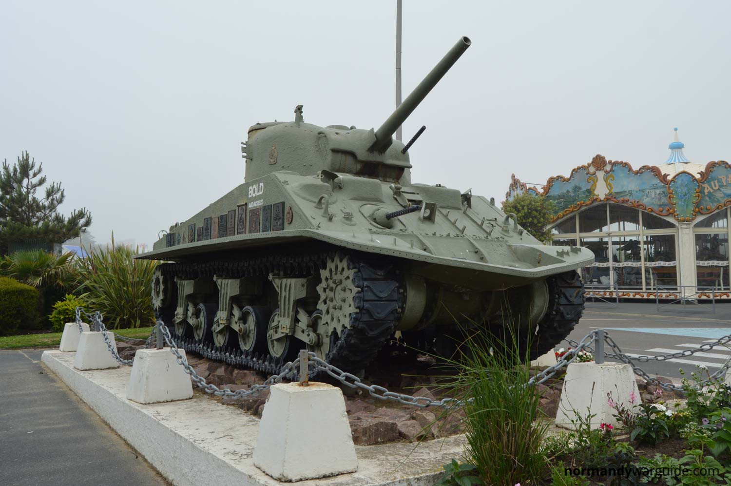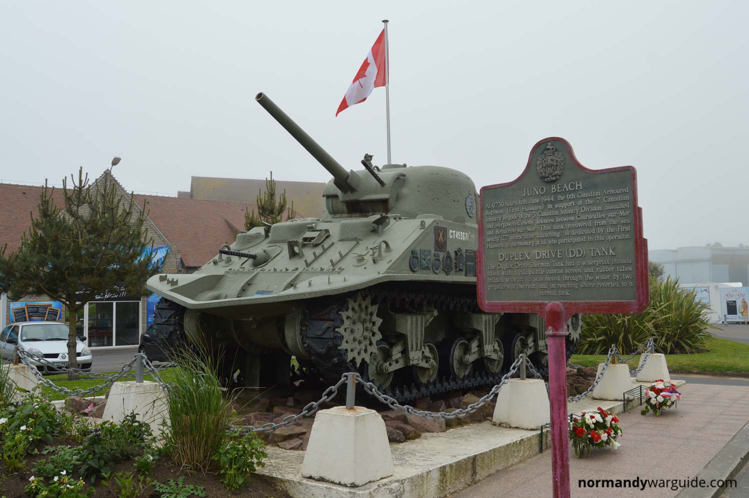 A Sherman DD tank which belonged to the Canadian 6th Armoured Regiment located at Courseulles-sur-Mer near the harbour entrance.