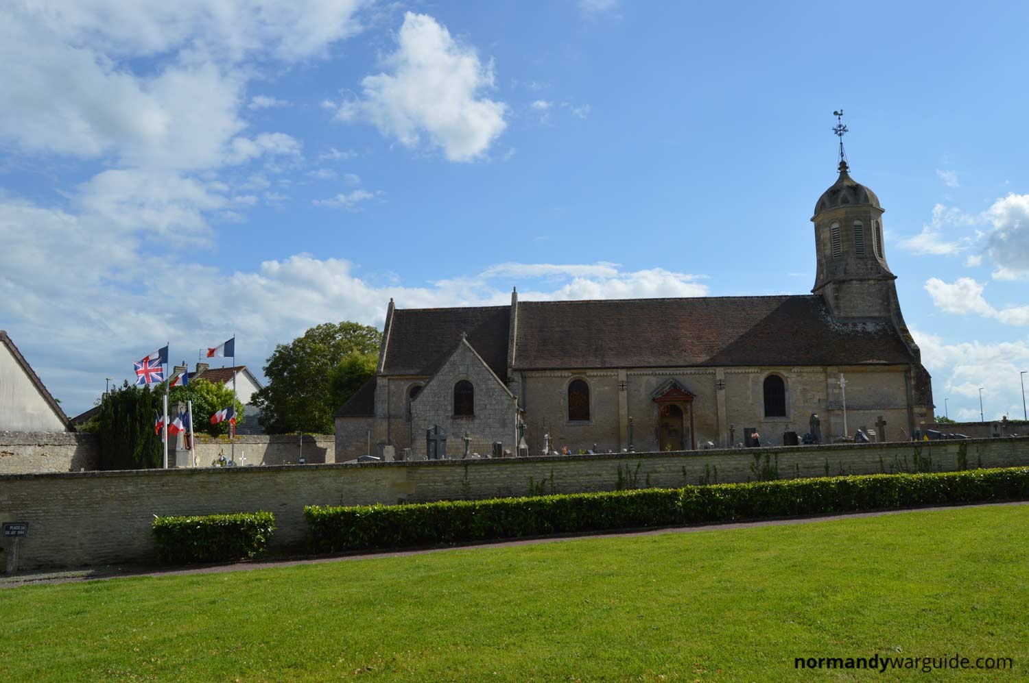 In Escoville churchyard there is a single Commonwealth War Grave Commission grave for William Sydney Wilkins of the Oxfordshire and Buckinghamshire Light Infantry who died on the 7th June 1944 aged 22.