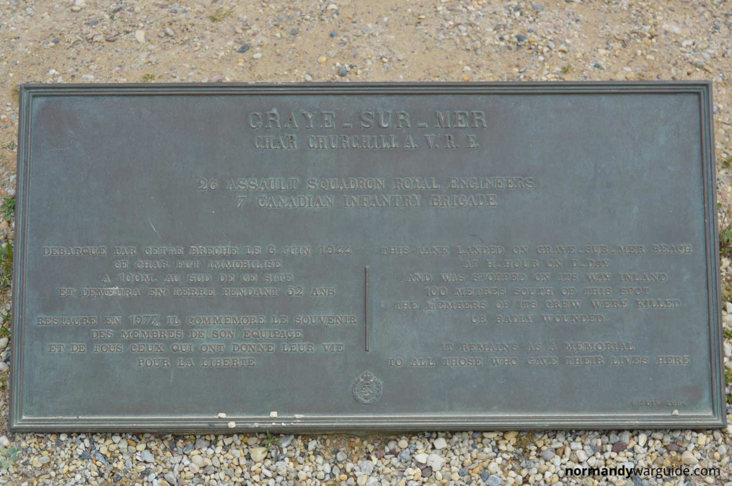 A tribute to the soldiers of the Canadian Infantry who landed on the beach of Graye-sur-Mer (Mike Green and Mike Red) suffering heavy casualties before liberating the village.