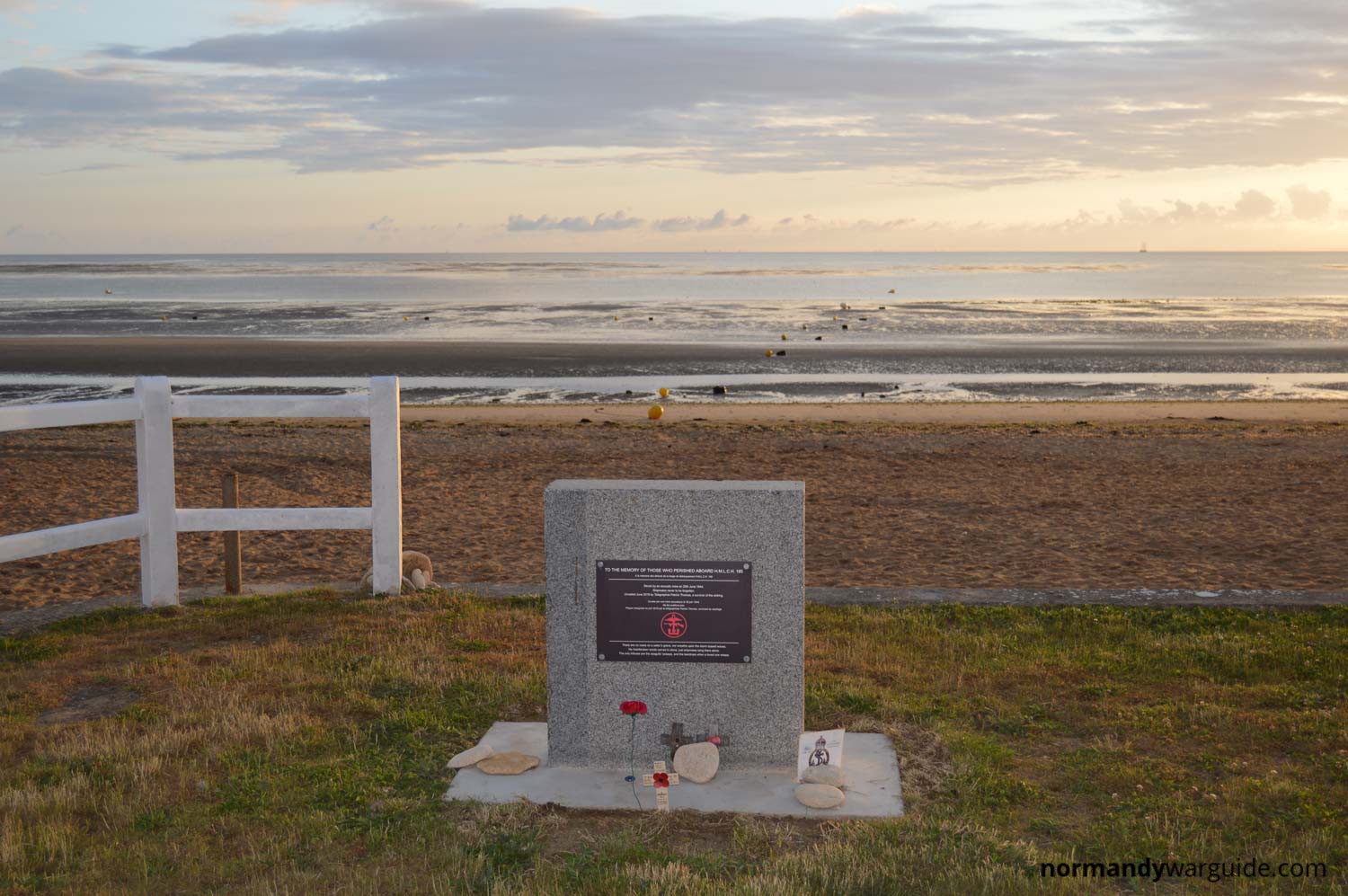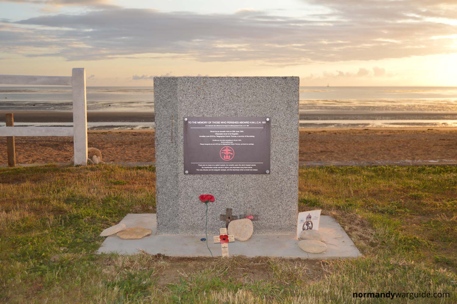 A memorial to those who were killed when H.M.L.C.H. 185 struck a mine on the 25th June 1944 off the coast of Lion-sur-Mer.