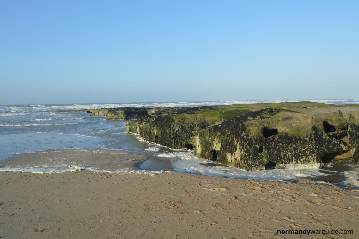 The artificial Mulberry harbour was built by the Allies at Arromanches (later known as Port Winston) to enable the rapid offloading of supplies, troops and vehicles into Normandy once the beachhead had been secured.