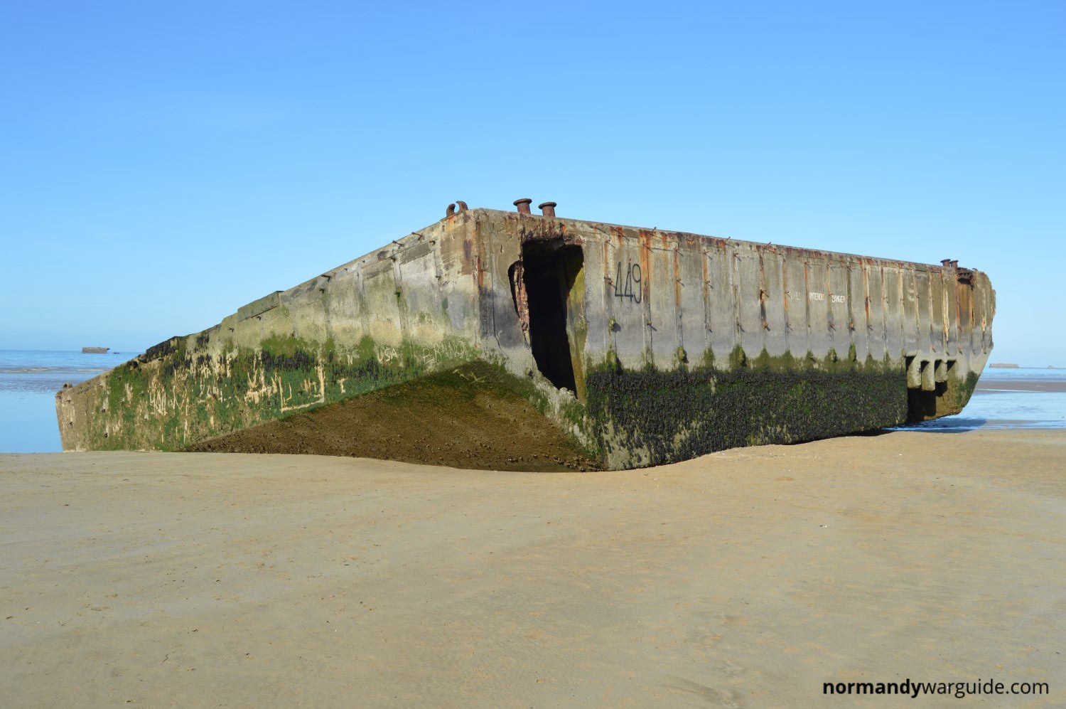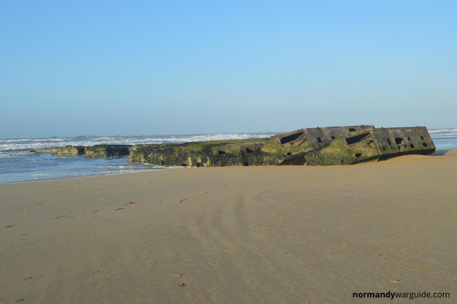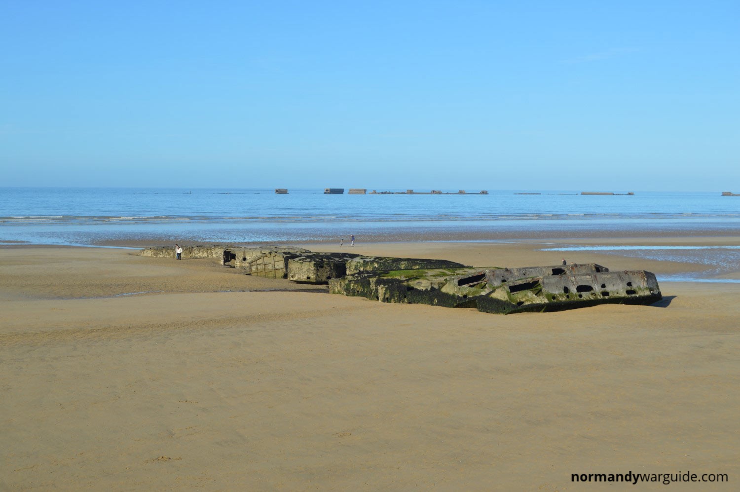 The harbour was prefabricated in the UK before being towed across the channel and assembled. The harbour consisted of steel roadways which floated on steel and concrete pontoons. Despite being designed to last for 3 months the harbour at Arromanches was used for 10 months allowing up to 18000 tons of supplies to be unloaded each day.