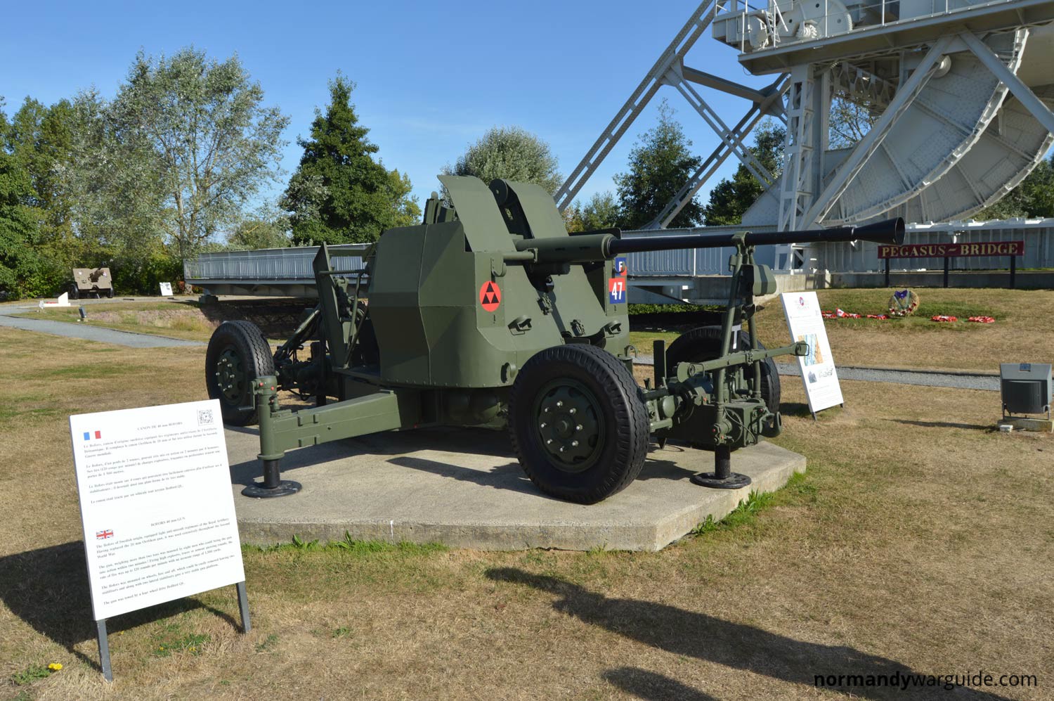 Read moreA Bofors 44mm Anti Aircraft gun located at the western end of Pegasus Bridge opposite Cafe Gondree.