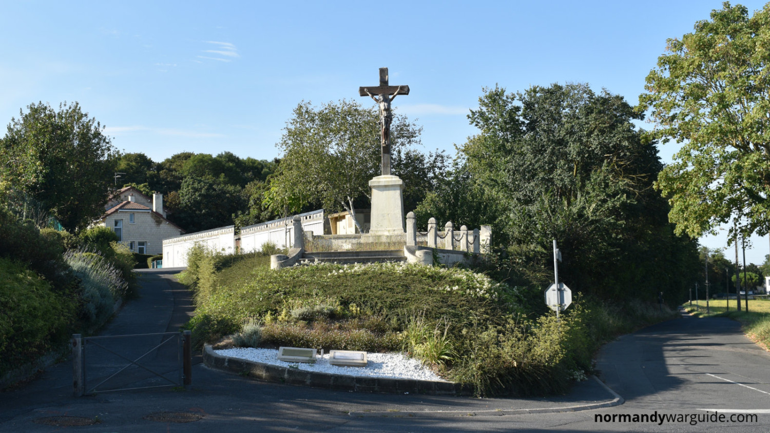 A plaque to the 32 men of the Lincolnshire Regiment who died in the liberation of Herouville on 8th July 1944 and the further 208 who died in the battles for France, Belgium, Holland and Germany.