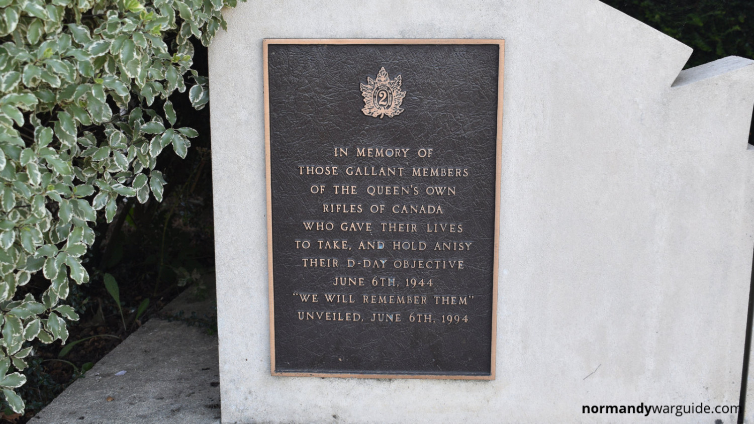 This memorial in Anisy, Normandy commemorates members of the Queen’s Own Rifles of Canada who were killed on June 6th, 1944, during the Normandy landings. It marks their role in capturing and securing Anisy, one of the unit’s assigned D-Day objectives. The plaque was unveiled on June 6th, 1994, to mark the 50th anniversary of D-Day.