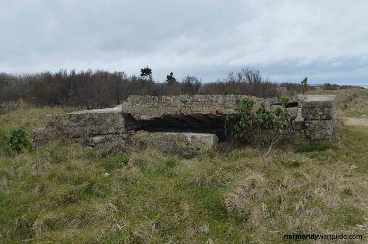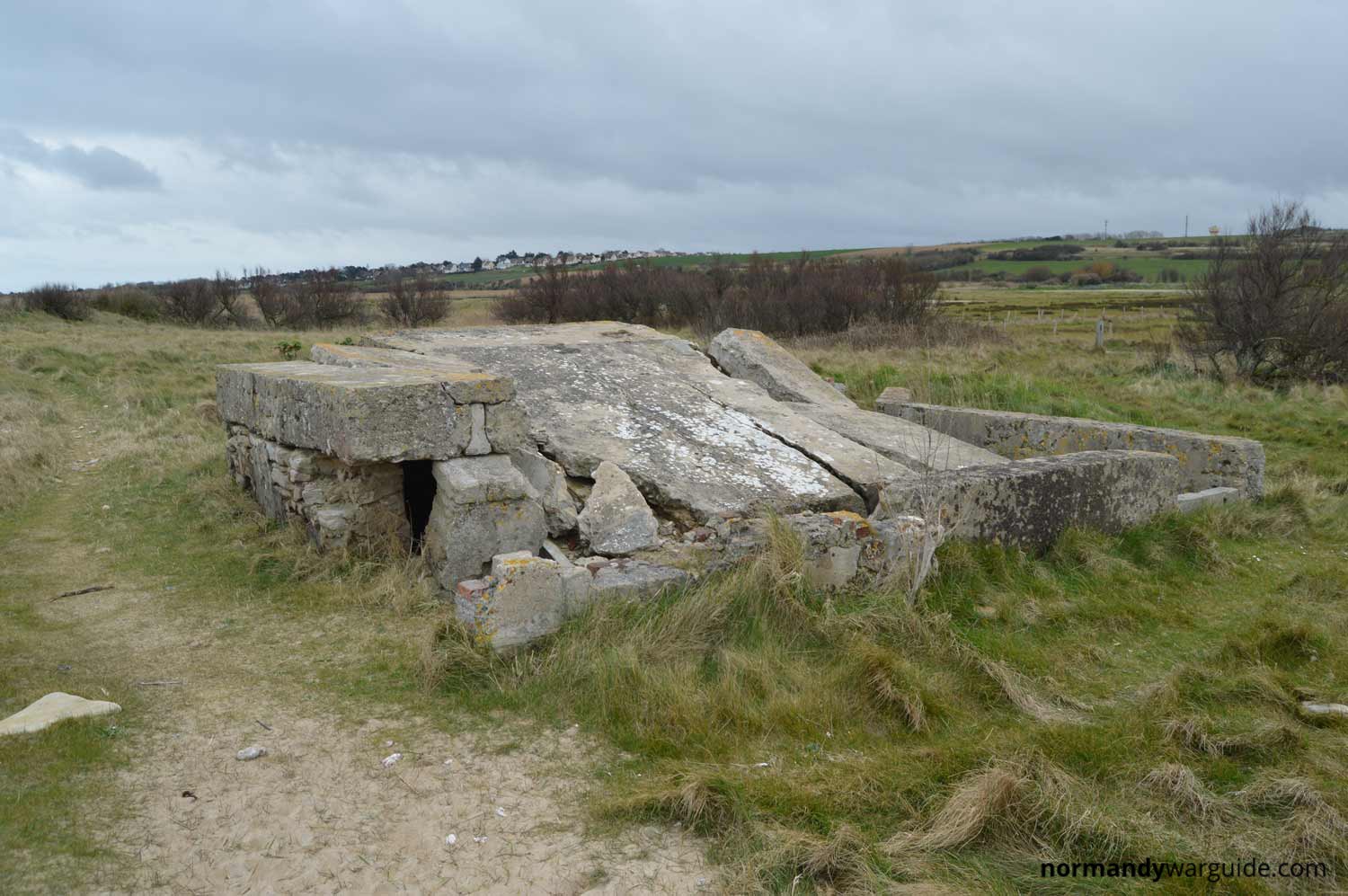 Today the fortifications are in Marais du Bessin (Bessin Marsh) a protected site with no direct access by car. The site can, however, be accessed by parking 1 - 2km to the east near Mont Fleury and walking along a coast path.