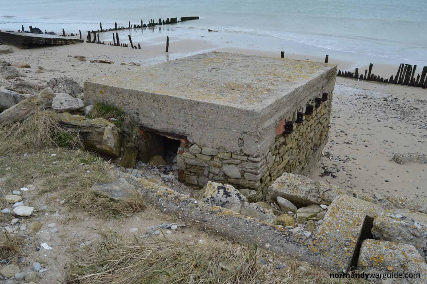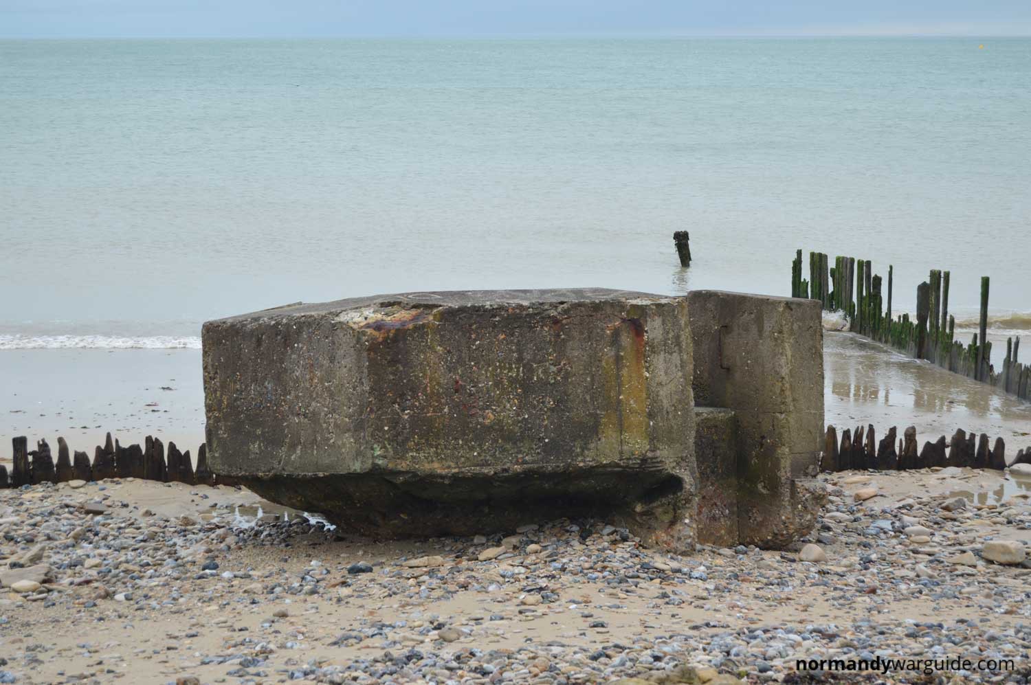 The remains of these fortifications were part of WN33 and are located on the beach between Mont Fleury and Asnelles which was the King Green sector of Gold Beach.